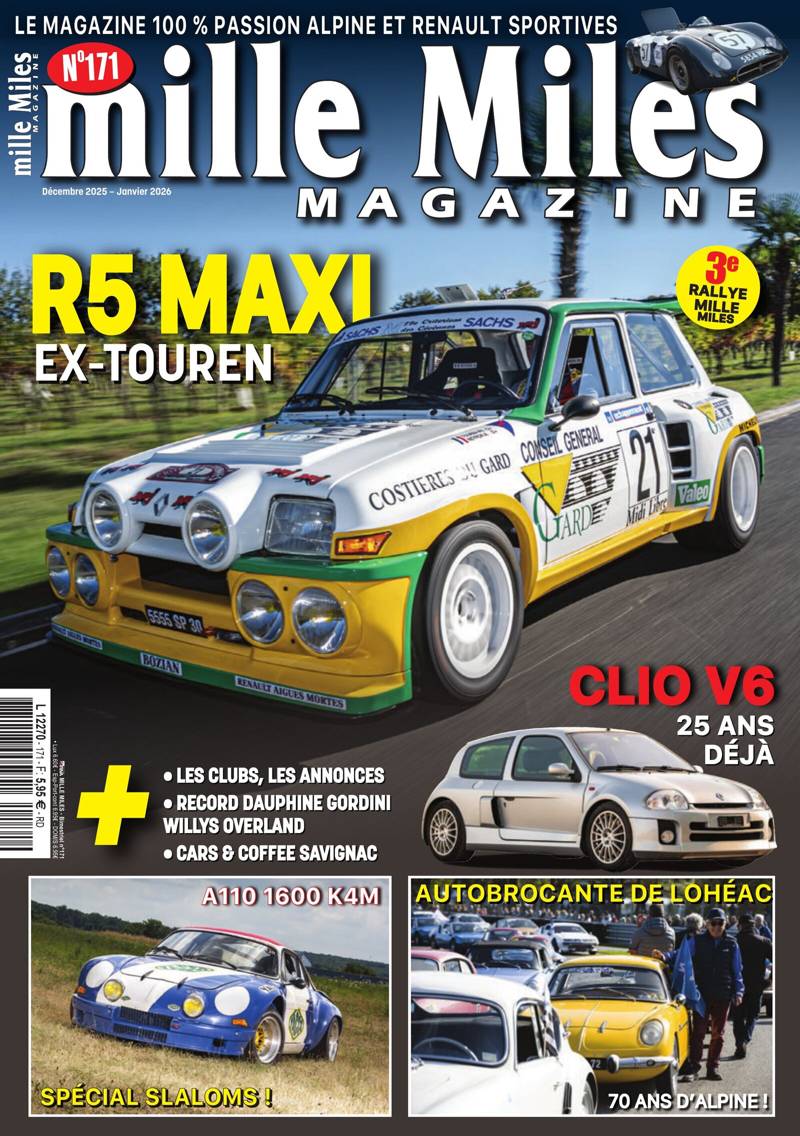 Premier magazine dédié aux Alpine et Renault sportives et dérivés, Mille Miles est la référence pour les amateurs du A fléché. Essais, archives, portraits, rencontres, clubs, petites annonces, tout l'univers de la marque est présent dans les pages, mélant documents d'époque et photos originales.